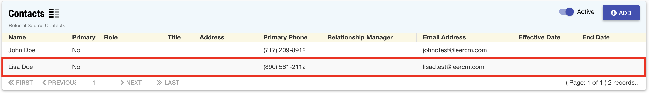 - In the scenario above, the referral source already exists in our CRM database. Therefore, the system will simply add the new contact Lisa Doe to the existing record.