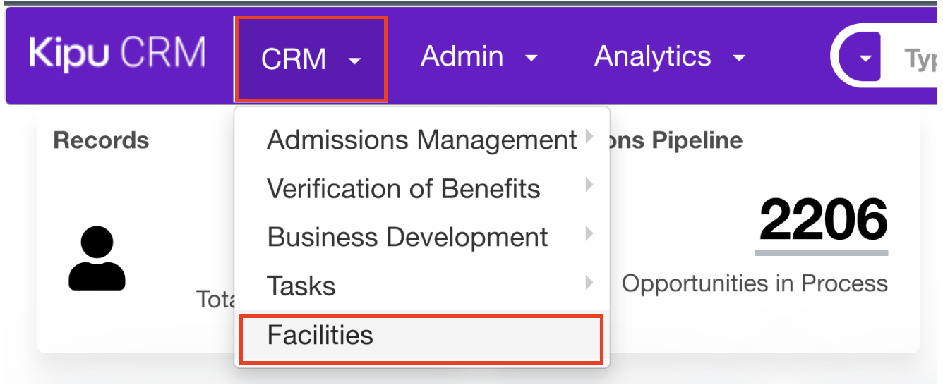 - To begin, navigate to CRM > Facilities