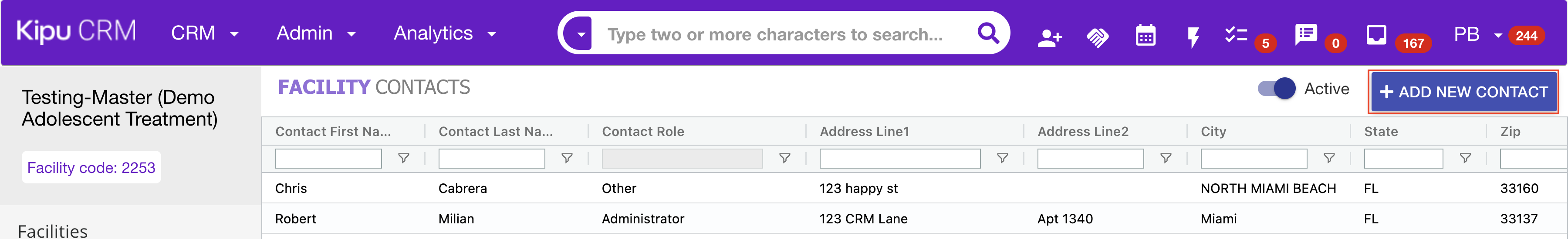 Facility Contacts within the Kipu CRM can be set up to support Outside VOB and transportation-related processes.