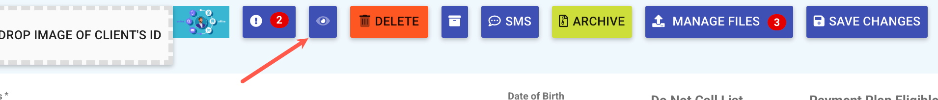 The Visibility Controller icon is represented by an eye symbol, usually located in the top banner of the record modal you are viewing.
