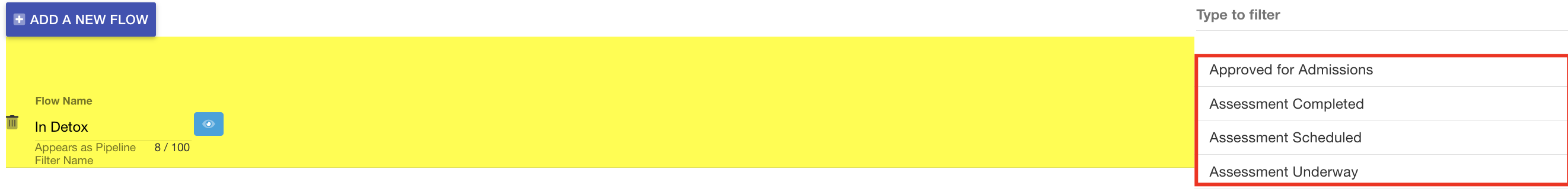- The Admissions Pipeline will now display the new flow you have created.