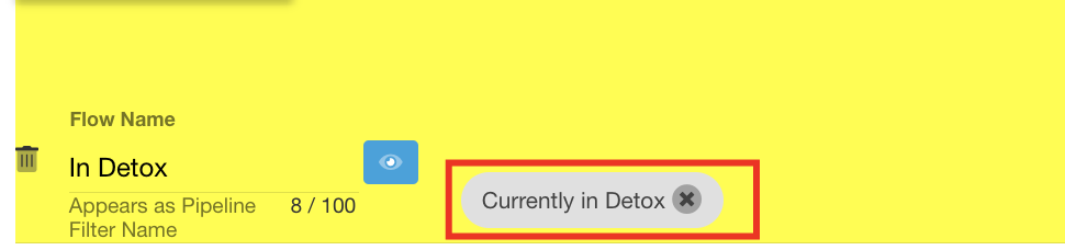 - Once selected, the pipeline flow will be highlighted in yellow so that the flow you're working on is clearly indicated.