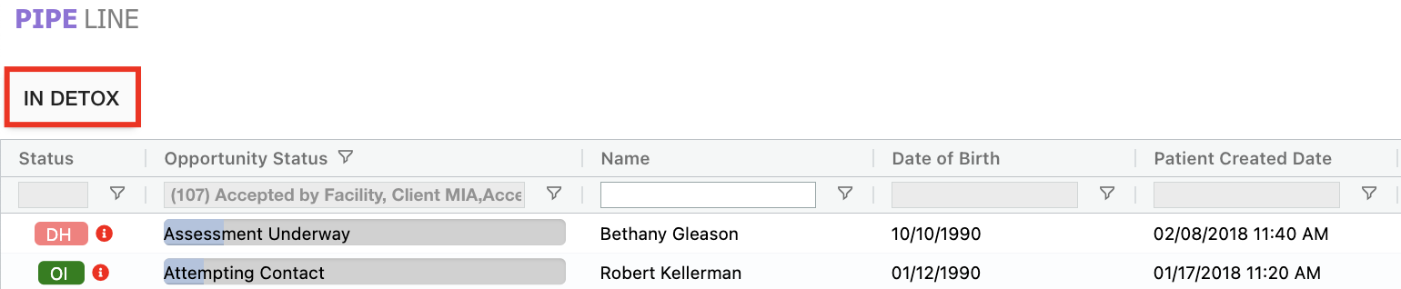 - If you select a pipeline flow the pipeline grid will display all the corresponding treatment opportunities.