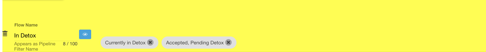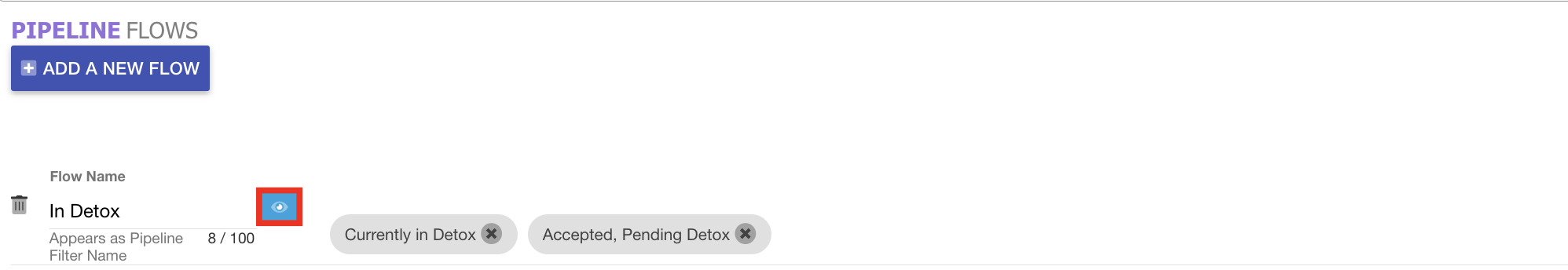 - Select the trash can icon on the pipeline flow you would like to delete.