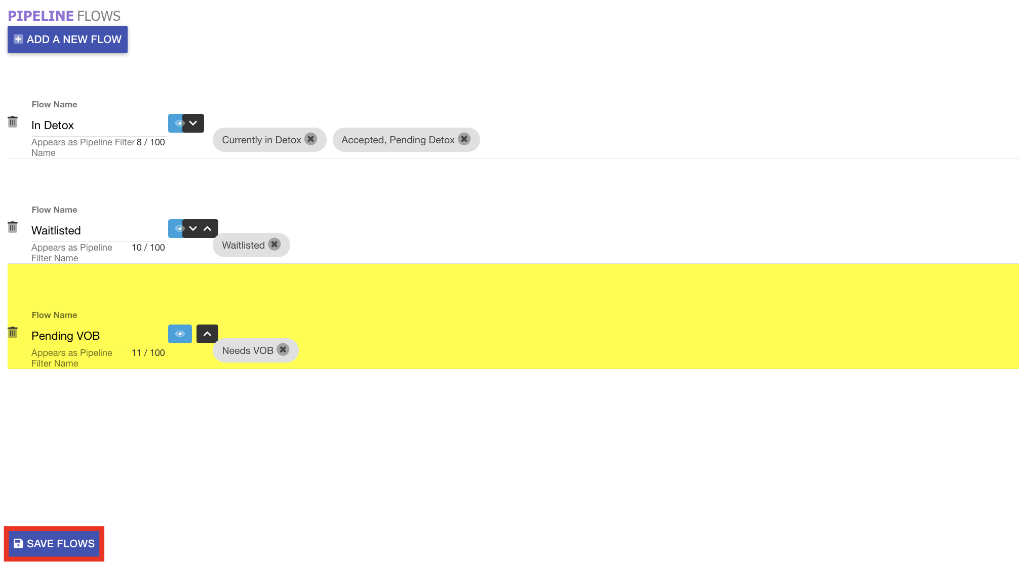 - Once completed, click the Save Flows button.