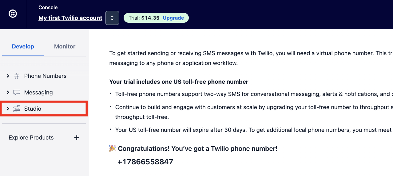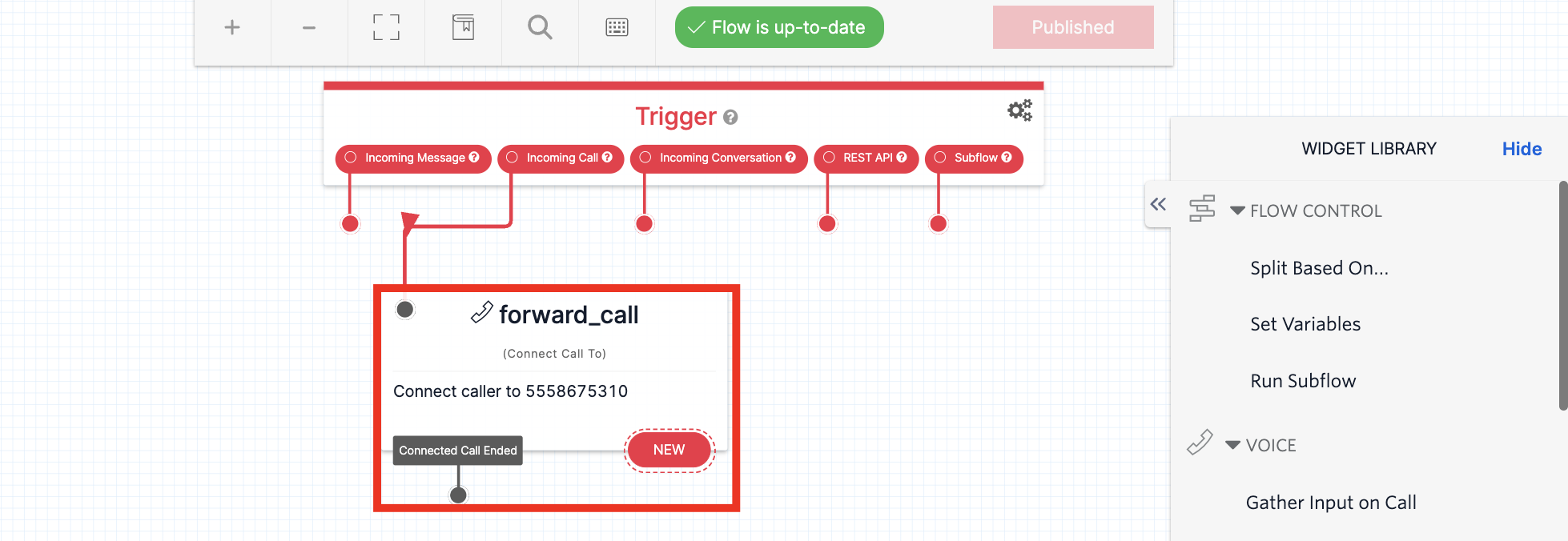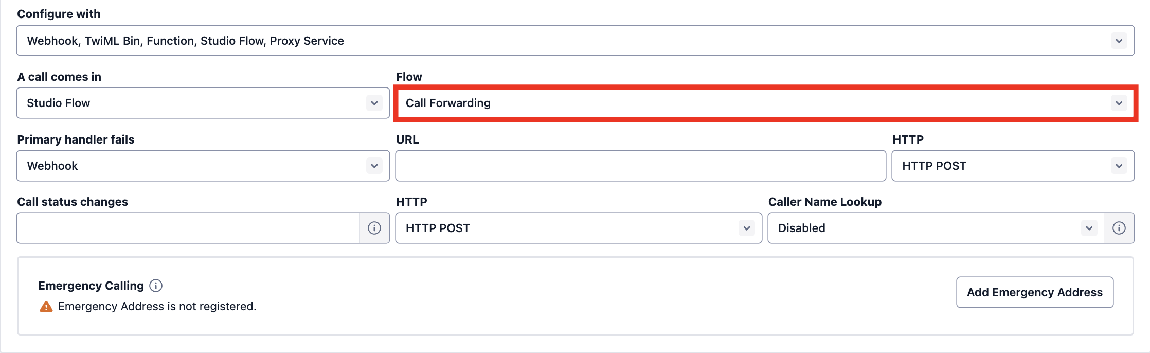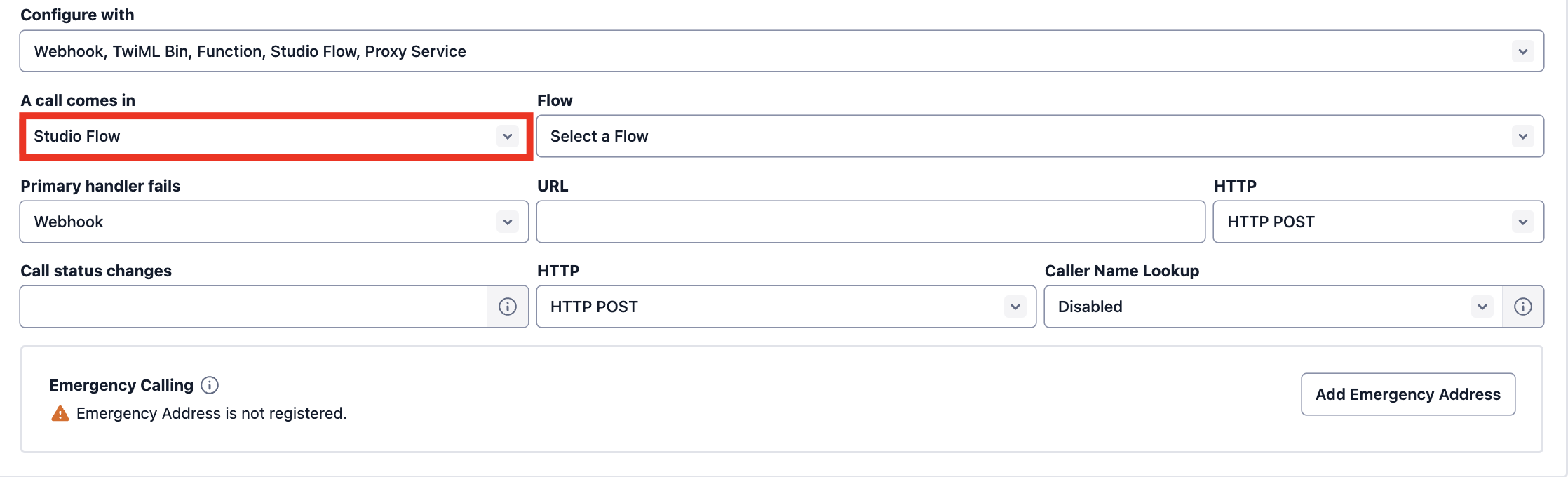 - Use the drop-down menu in the A call comes in field to select Studio Flow.
