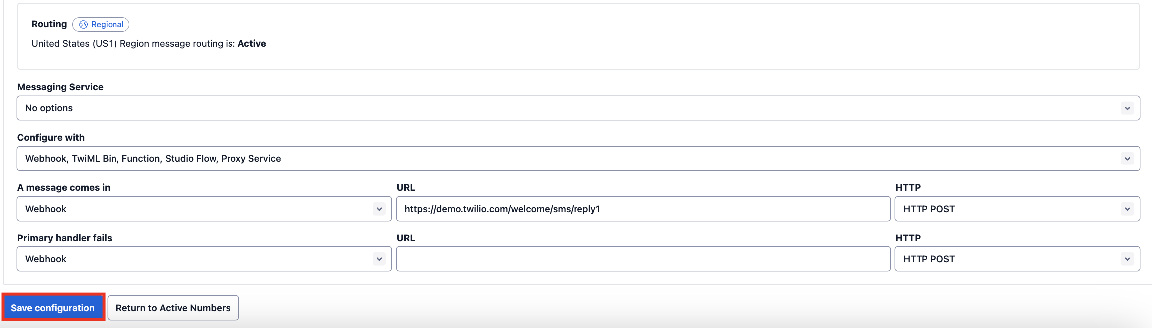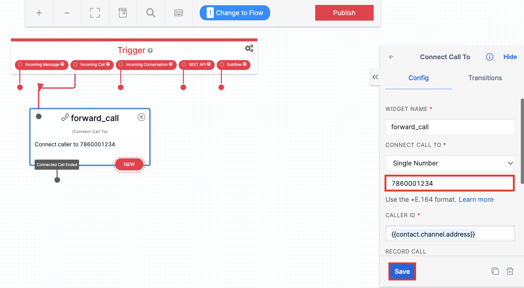 - Using the Configuration settings on the right, update the phone number to the desired forwarding number. Select Save.