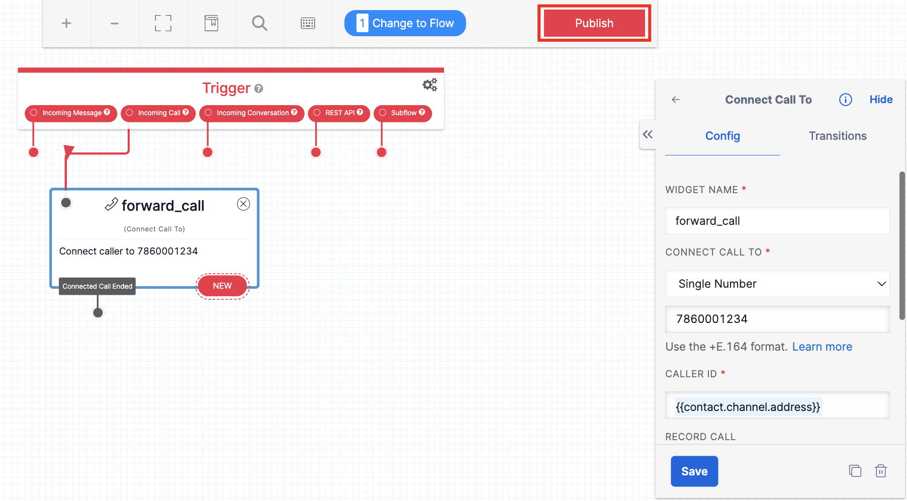 Do not apply any spaces or special characters in the phone number field - Click Publish.