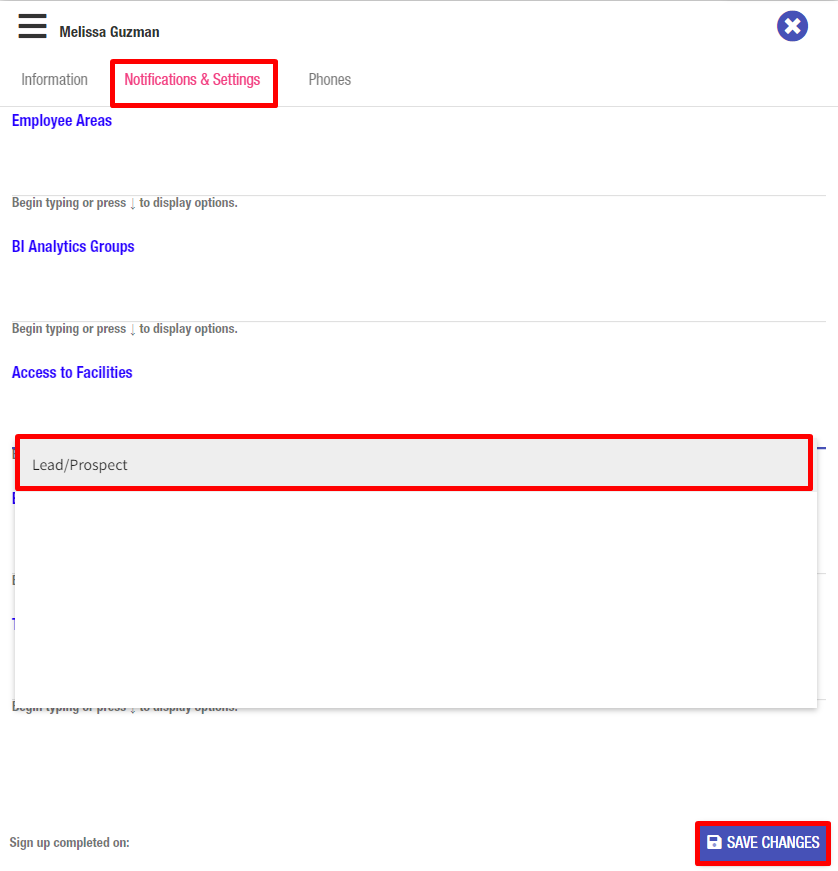 - Select Access to Facilities and choose the name(s) of the location to be added from the available list.