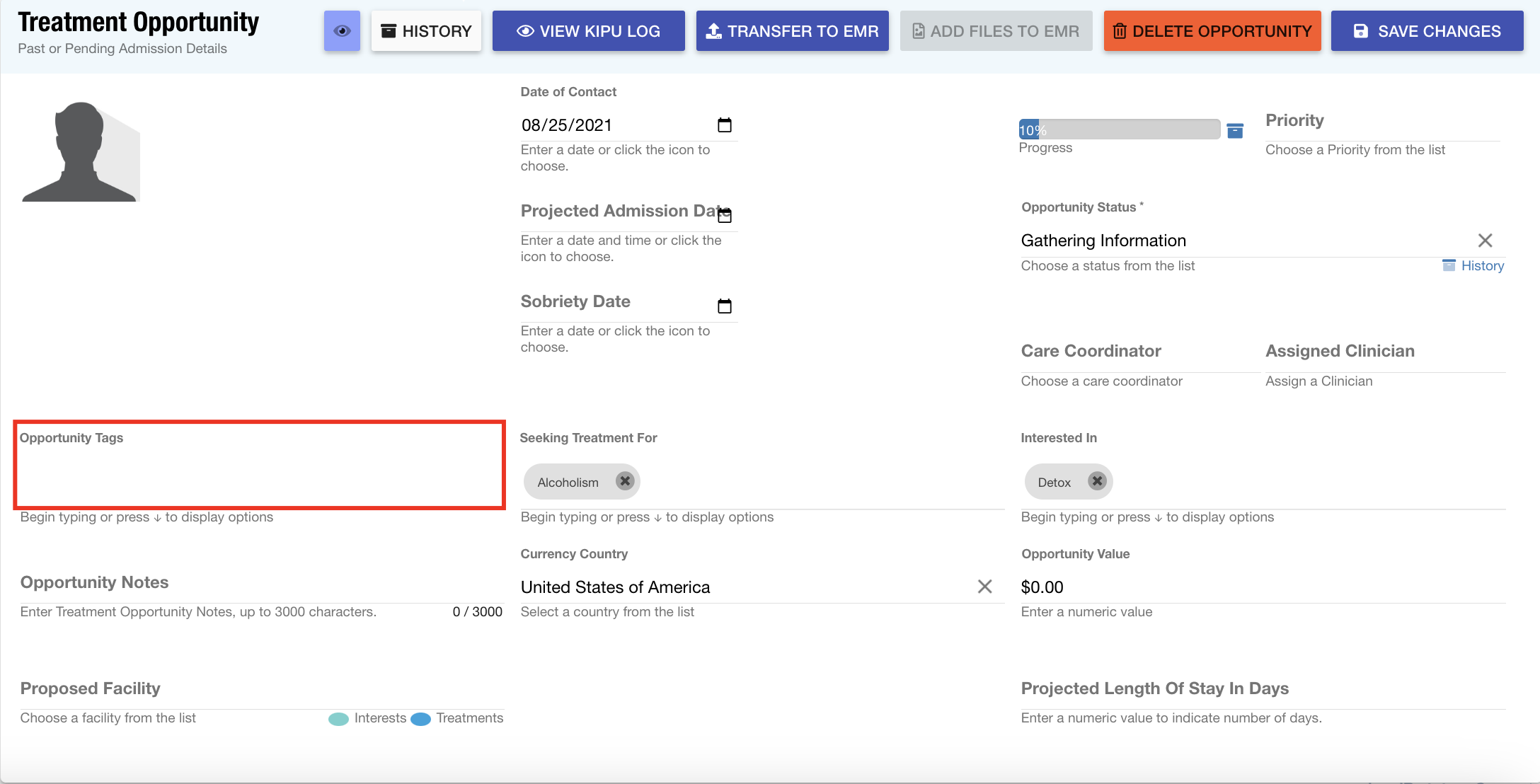 The Custom Tags feature in Kipu CRM significantly enhances the customization and documentation capabilities for organizations. Users can create free-text tags that can be applied to various entities within the system, including Patients, Opportunities, Calls, Decisions, and Tasks. Custom Tags serve multiple purposes, such as indicating the region from which a referral originated or highlighting important characteristics for each patient record. This flexibility allows organizations to better organize and manage their data, leading to improved workflows and more personalized care.