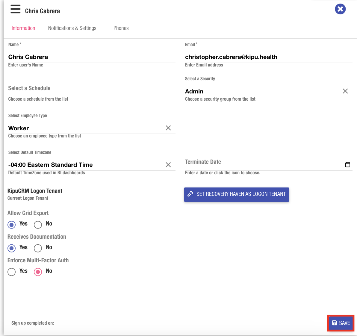 Kipu CRM, Roles: Super User, User Management