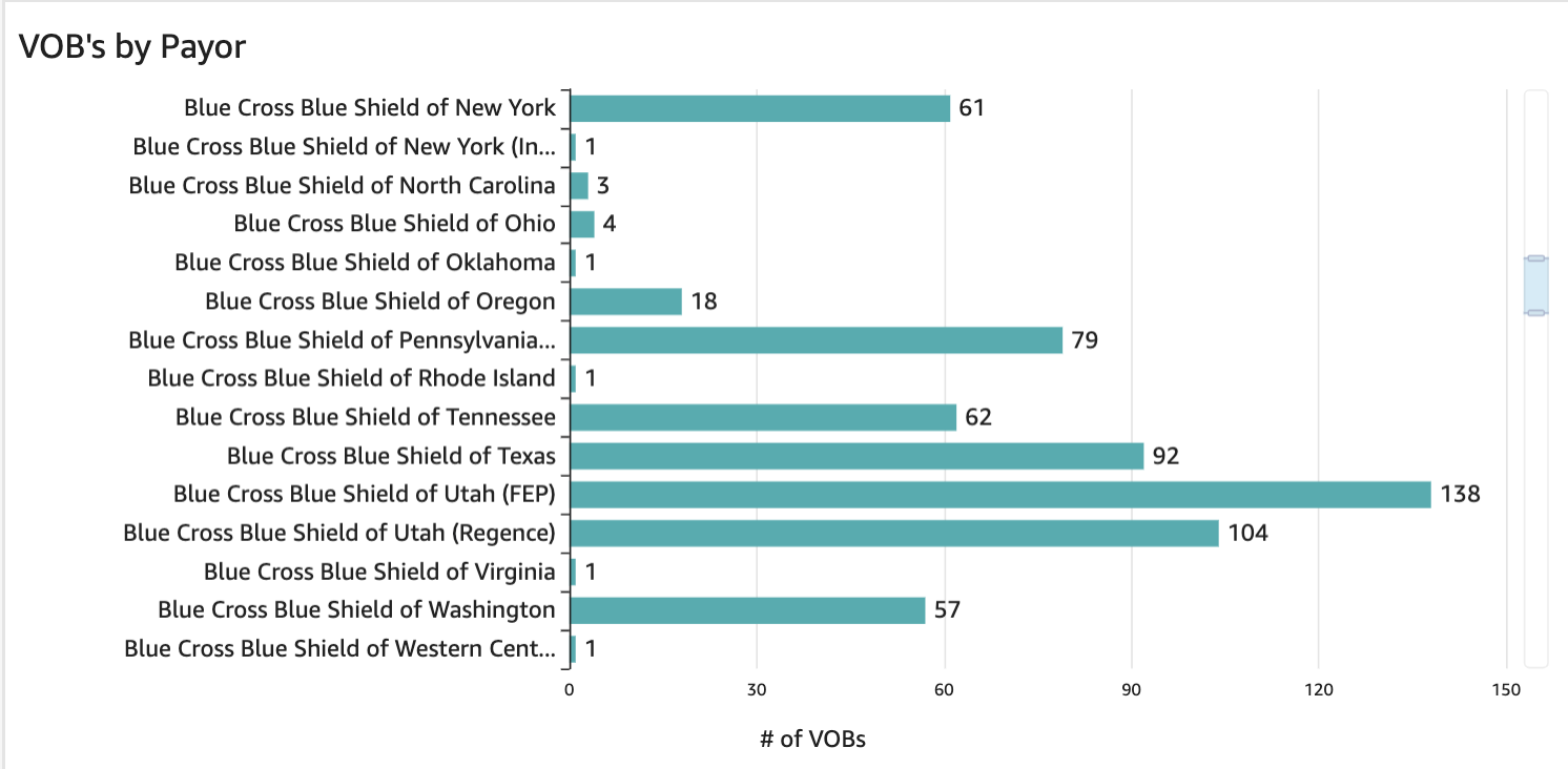 VOBs by Payor: Visualization of the total number of instant VOBs requested broken down by payor.