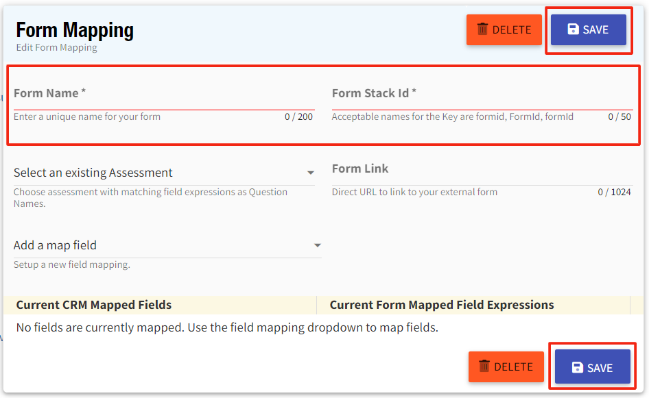 - Navigate to CRM > Organization >Tenant > Tenant FormStack Maps.
