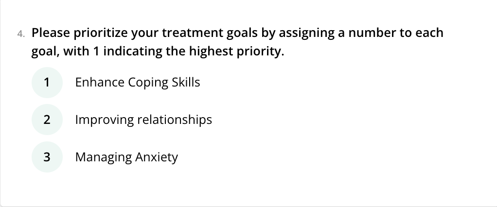 - Ranking: Allows you to prioritize or rank items in a specified order. You can assign a numerical value or position to each item to indicate its importance or preference. This field is commonly used when you need to arrange or prioritize a list of items or options.