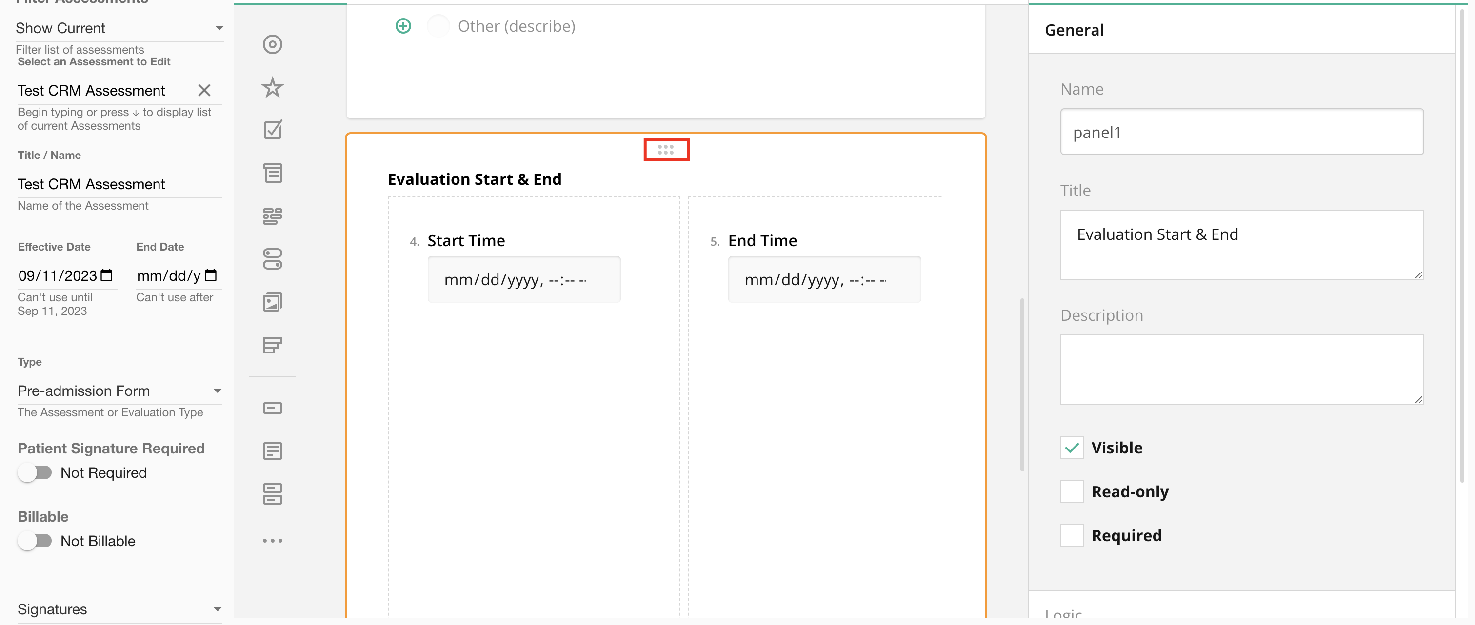 - The Evaluation Start & End field will be added to the bottom of the form template. If you want to change its position click on the top portion of the field and drag it to the desired location.