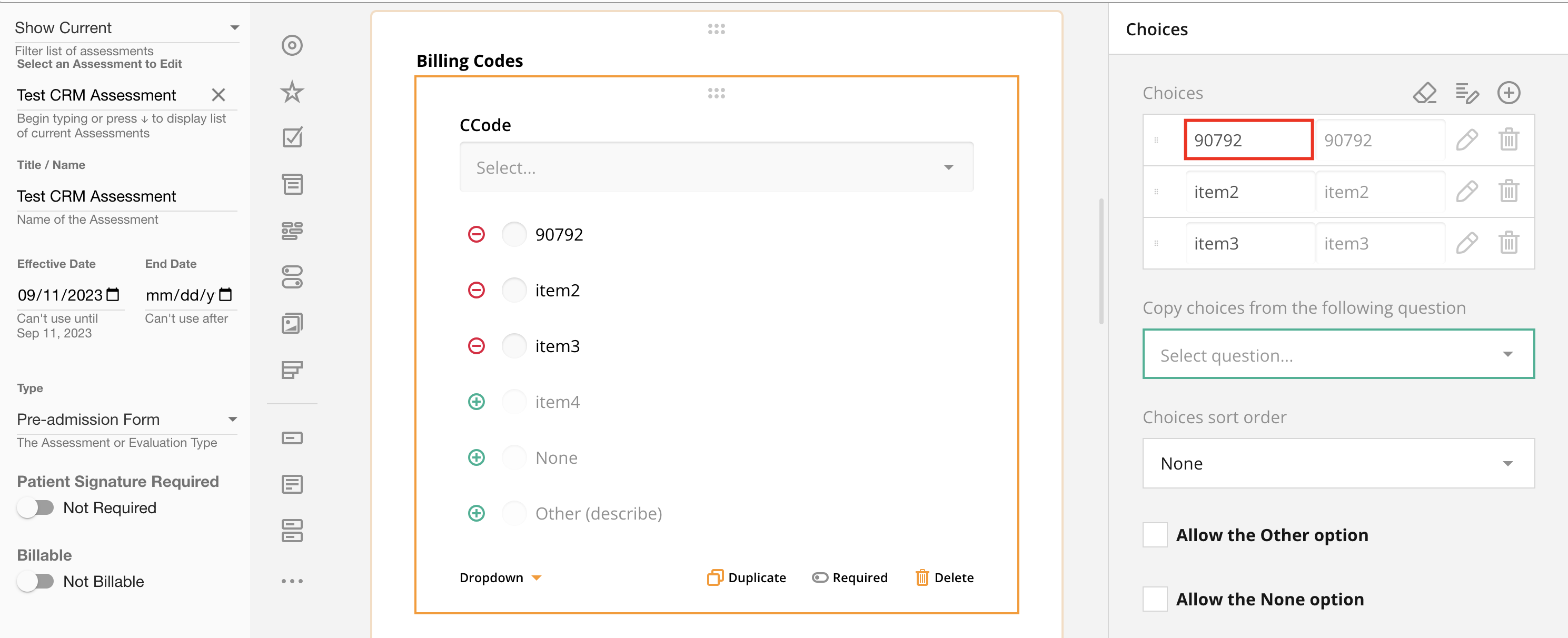 - Once you have finished configuring your billable code fields, set the Billable toggle to Billable.