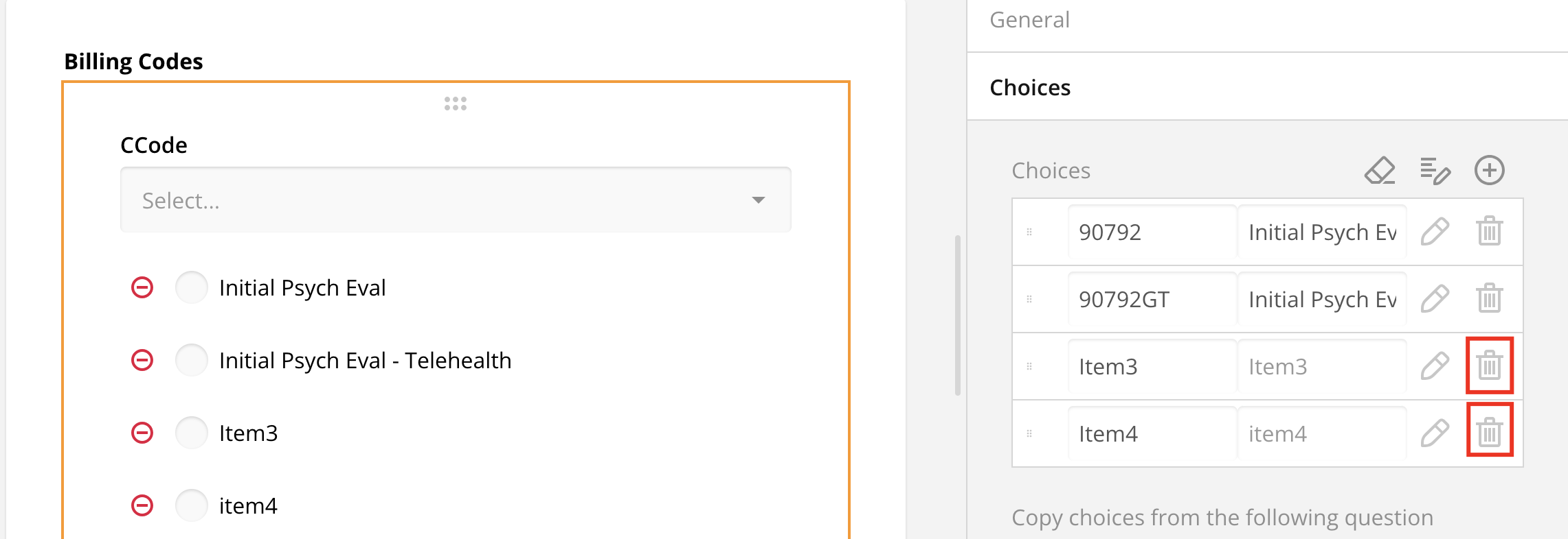 - Repeat these steps to add in the remaining billing codes. Click on the trash icon to delete any empty billing code fields.
