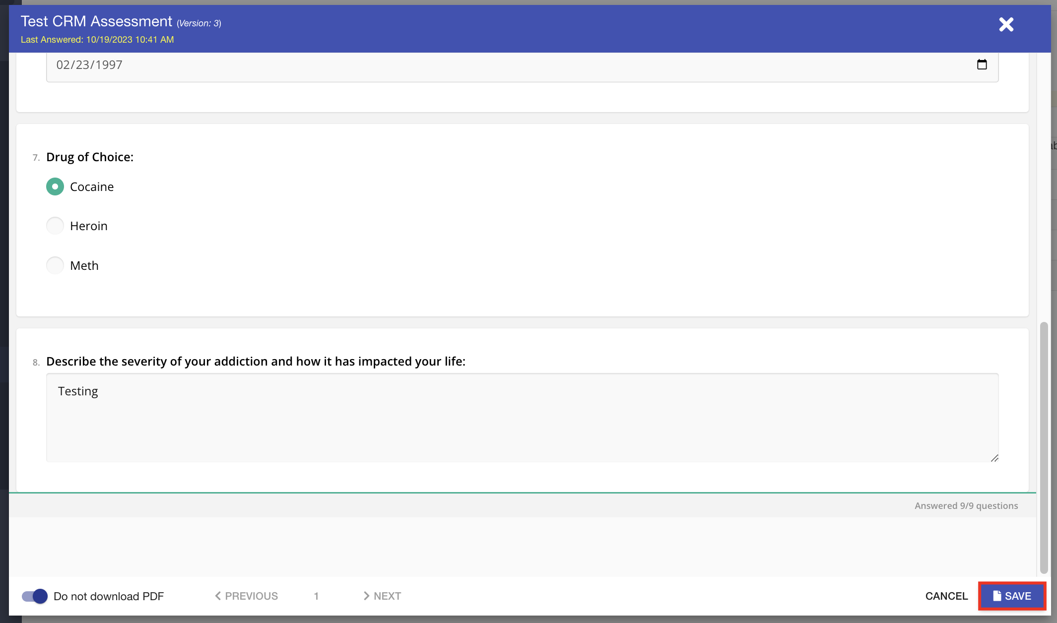 - Then, choose Save and PDF to ensure that the form will be available for transfer to EMR