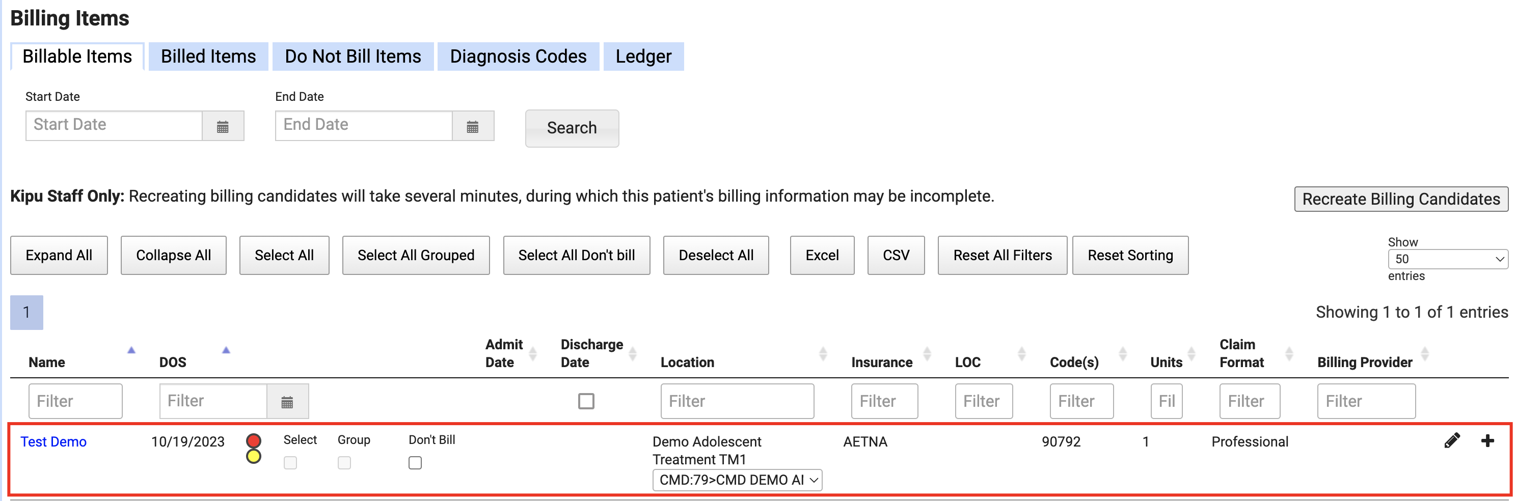 - Note: The billing codes added must be present and active in your EMR instance billing code settings. Please refer to this article for assistance with creating billable codes.