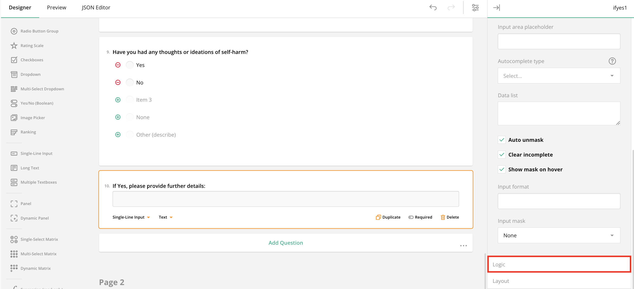 The Assessment Designer feature empowers users to add conditional logic-based questions to their assessment forms. This feature enhances relevance by tailoring questions to each respondent, ensuring that only relevant questions are presented.