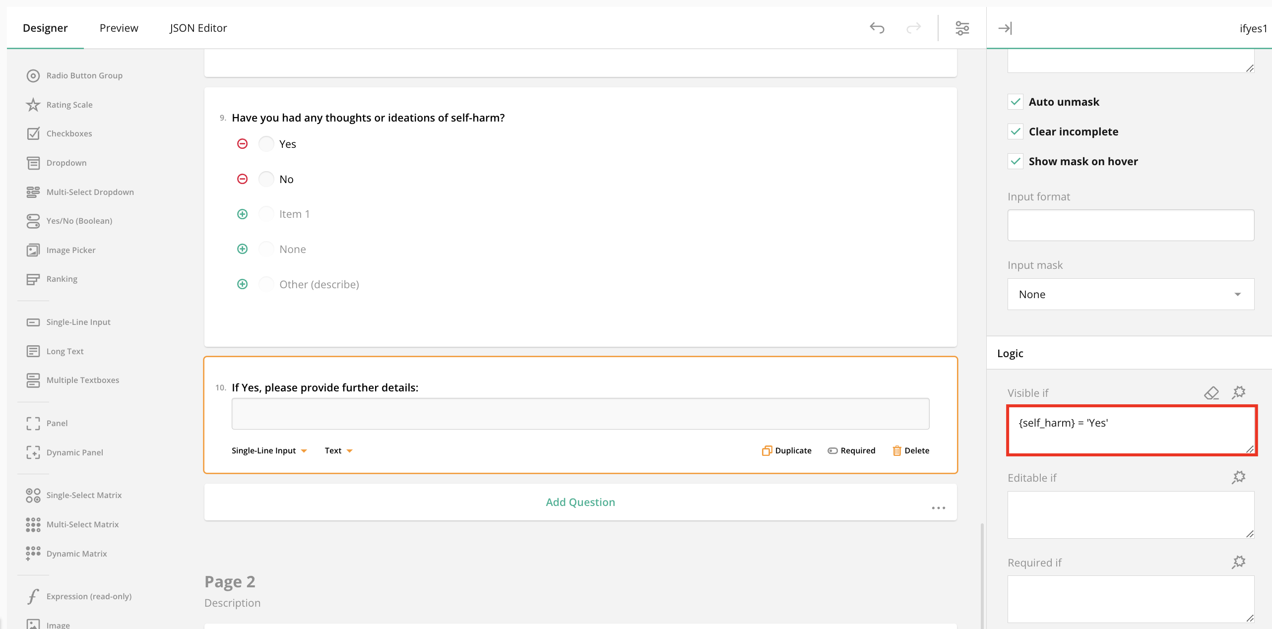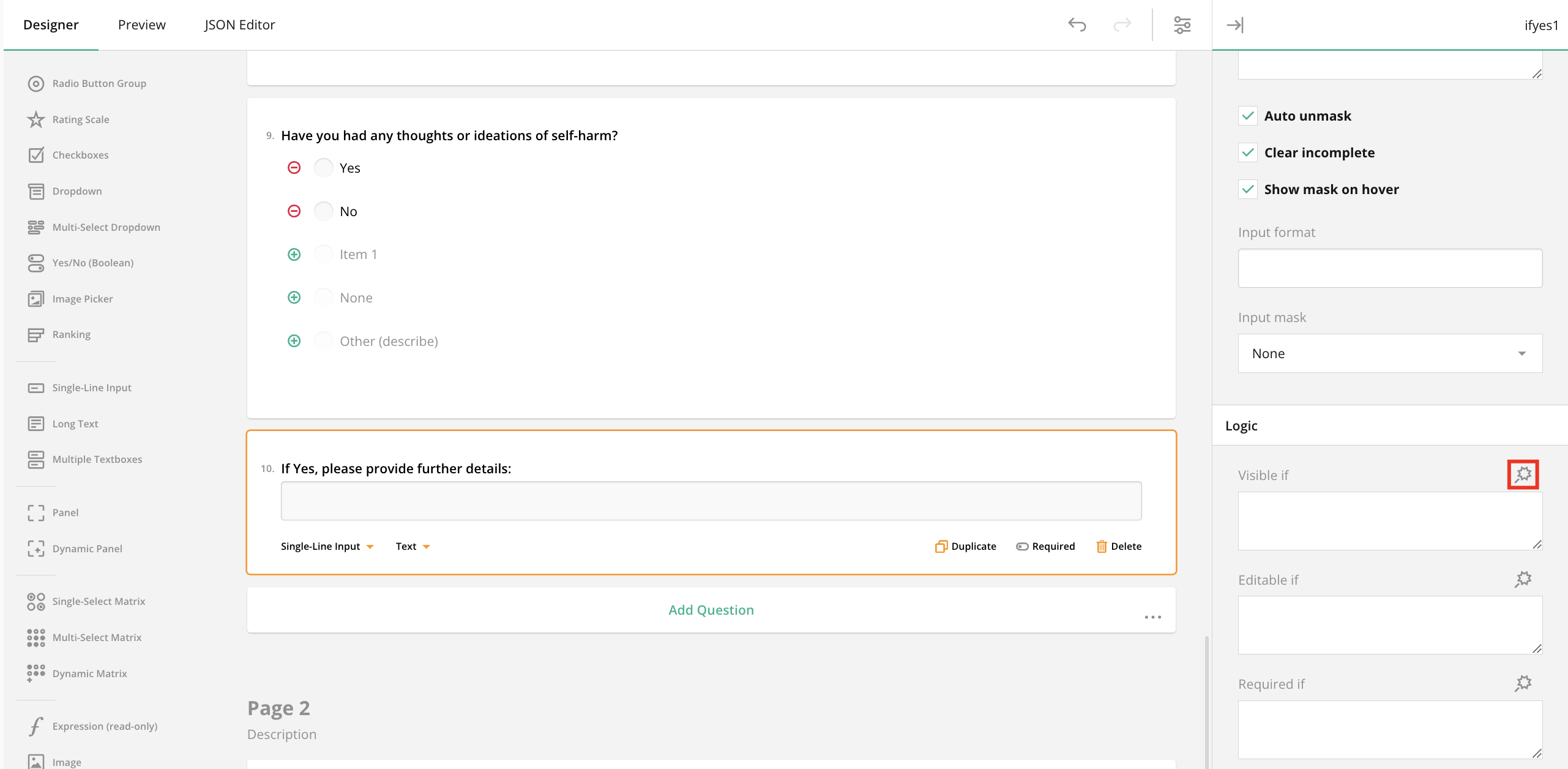 | Visible if | A feature in a form makes certain information or questions appear or become visible based on specific conditions or criteria. |
