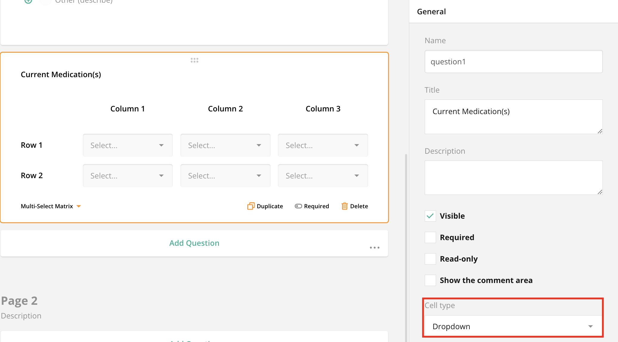 - In the General section, use the Cell Type drop-down to choose from Dropdown, Single-Line Input, or Long Text.
