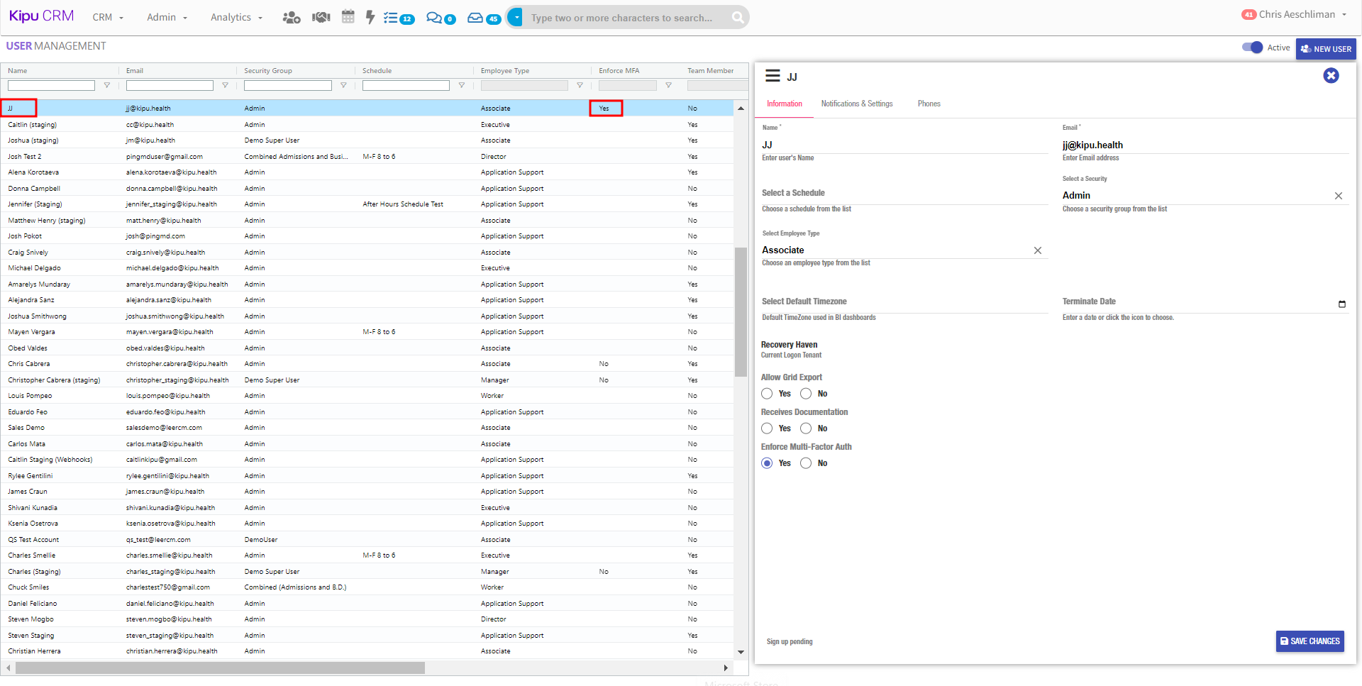 Kipu CRM, Roles: Super User, Features: User Management