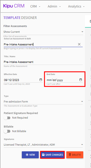 - Locate and enter an end date then select Save Changes.