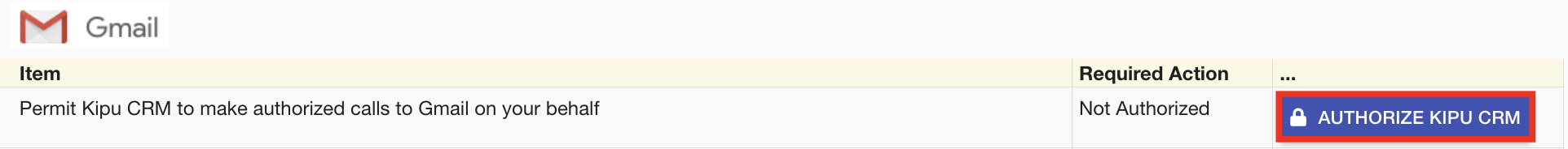 Once you have removed the Kipu CRM authorization from Gmail, return to https://www.kipucrm.com/#!/main/gmail and refresh your screen.