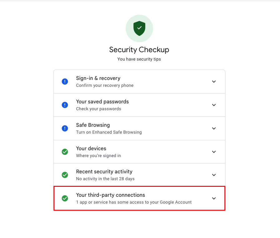 - Select Google Security Checkup.