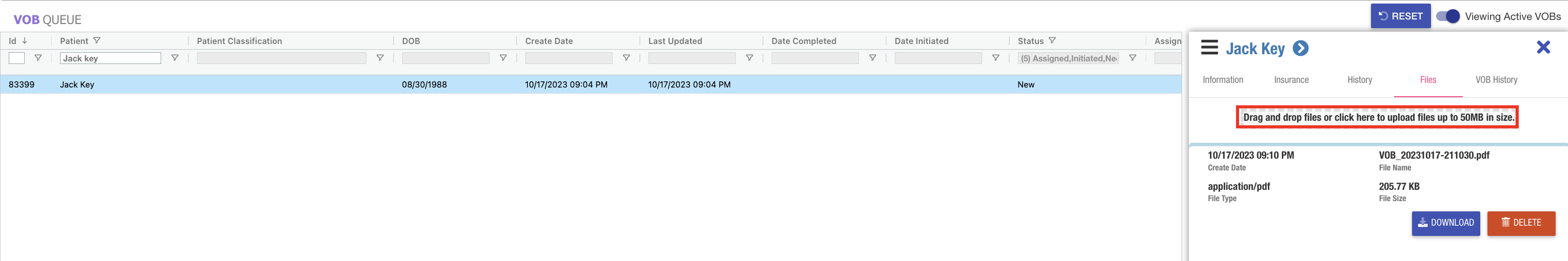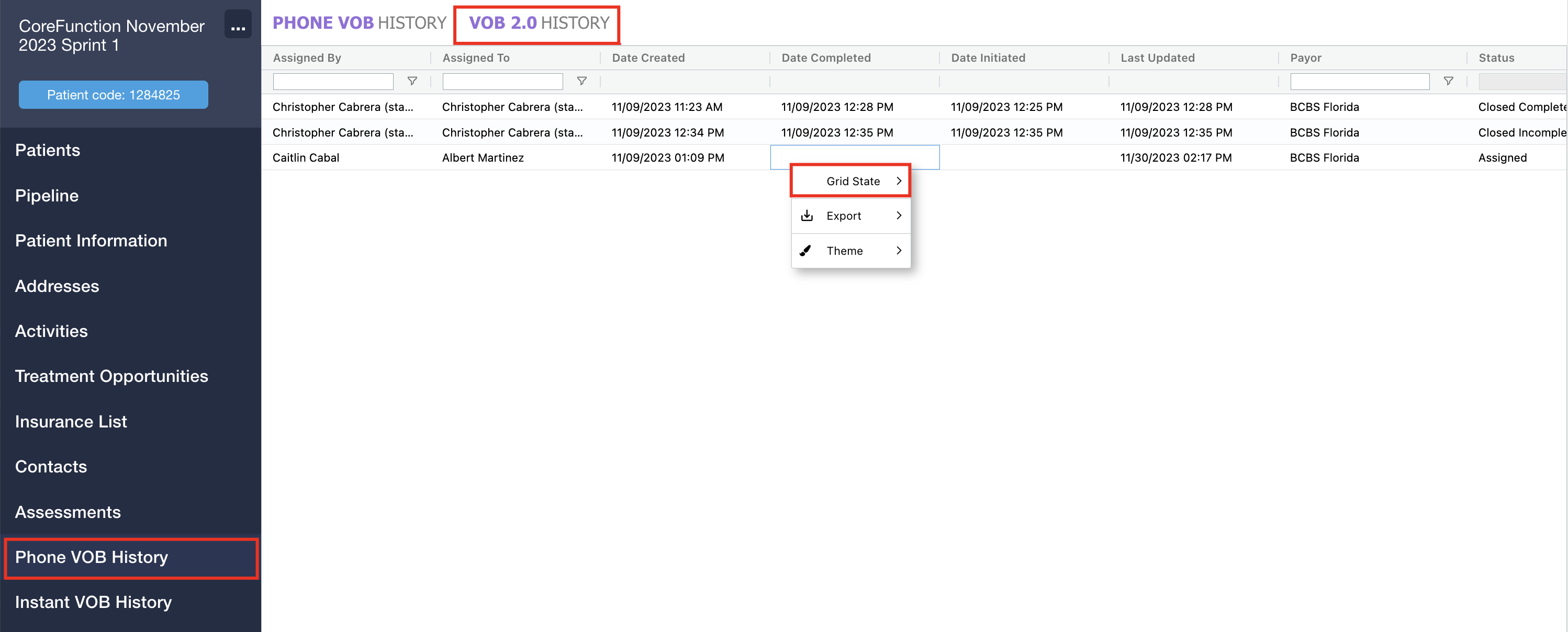 - Patient Records: The VOB 2.0 history grid within patient records has been upgraded to include support for grid state functionality.