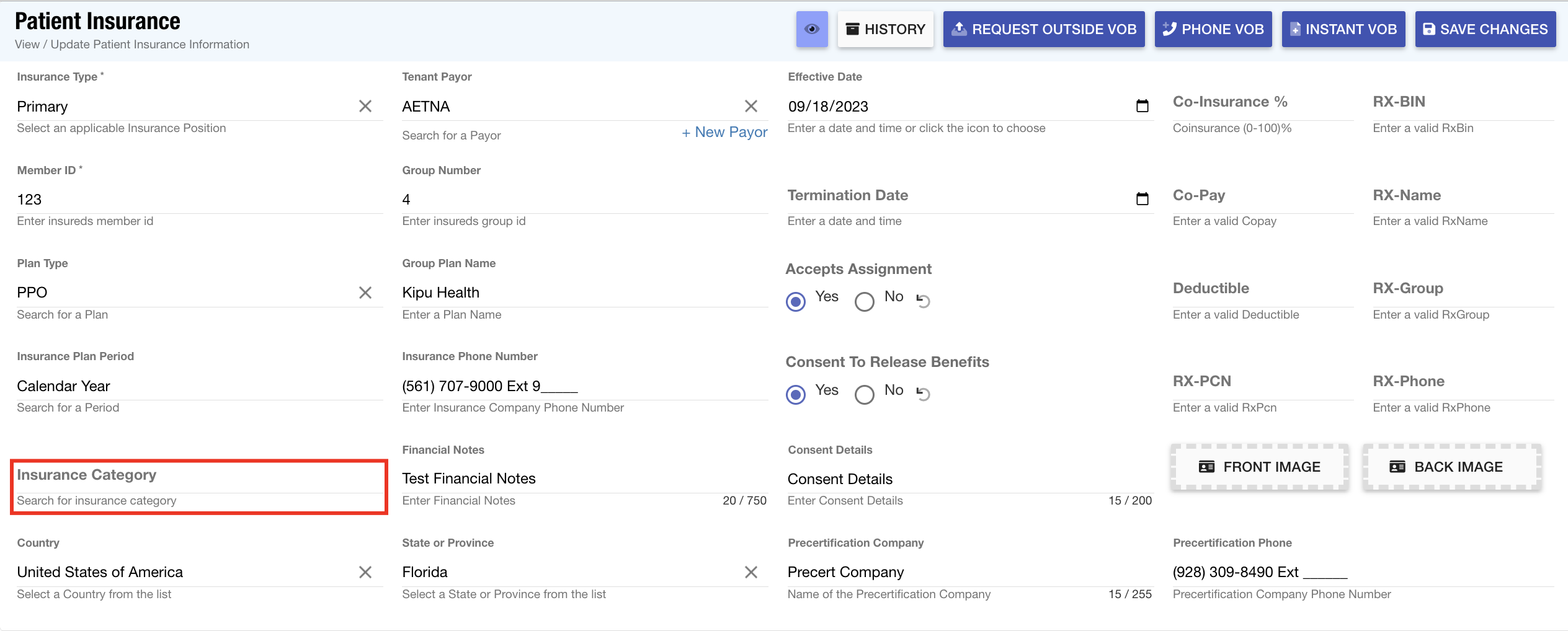 - Patient Insurance Records: The Plan Category field has been relabeled as Insurance Category for consistency with Kipu EMR.