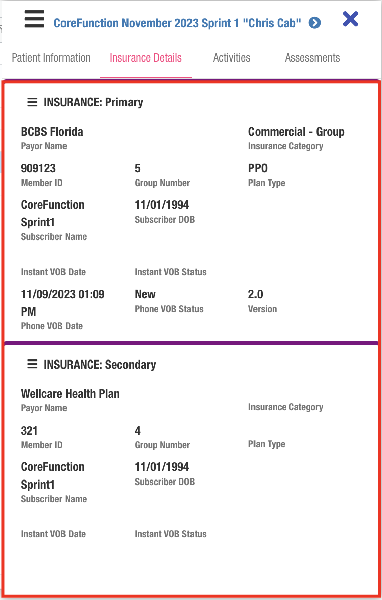 - Admissions Pipeline: The pipeline focus panel's insurance tab has been upgraded to display insurance records in the correct order: Primary, Secondary, Tertiary, and Other.