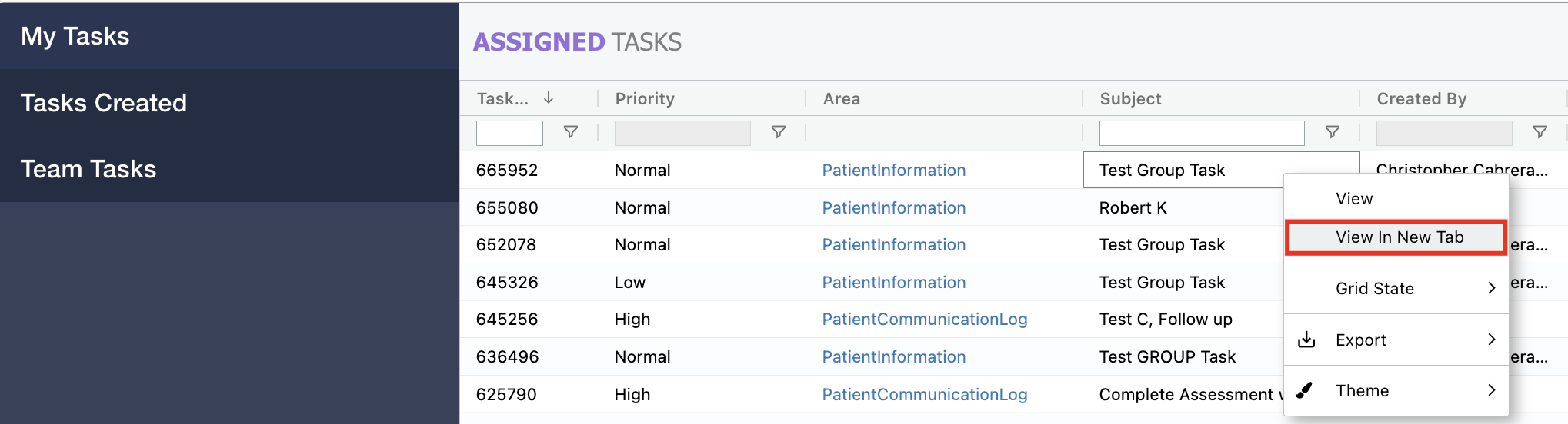 - Tasks: All grids within the task center have been enhanced to provide users with the option to view records in a new tab when right-clicking, offering greater flexibility and ease of navigation.