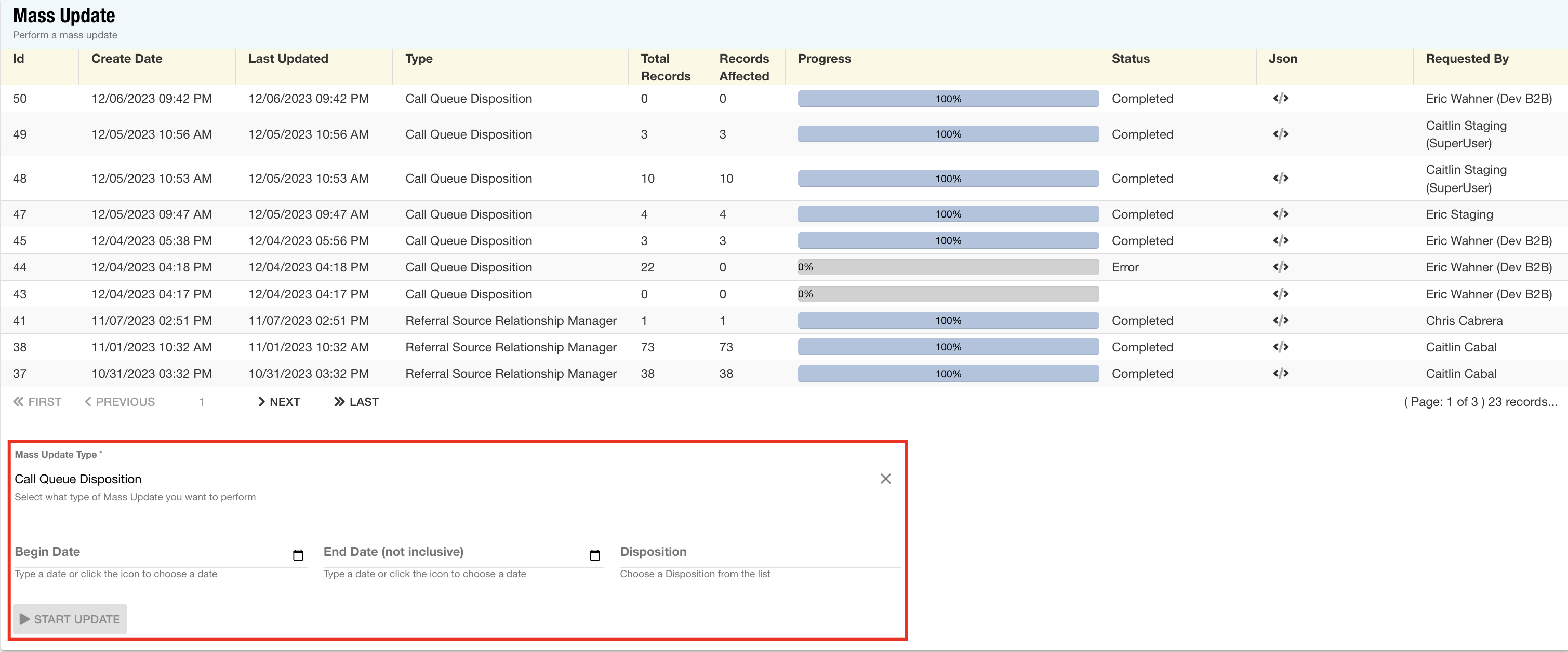 - Mass Update Tool: The Mass Update tool has been upgraded to include mass disposition capabilities for the Call Queue.