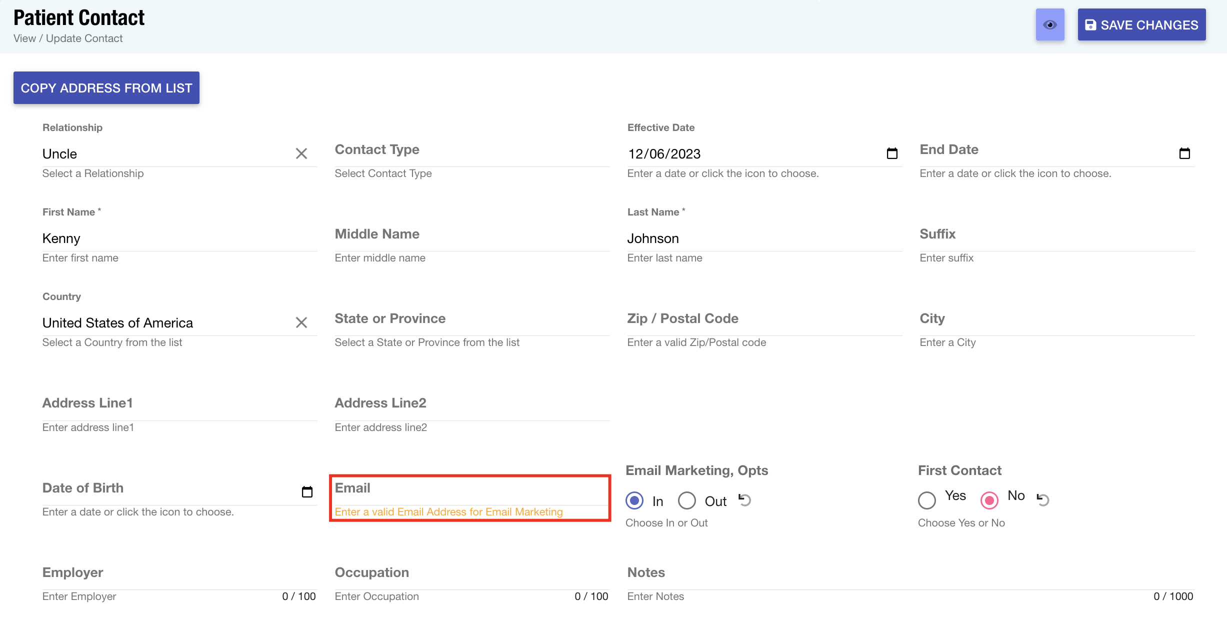 Patient Contacts: The email toggle on patient contact records has been upgraded to provide a warning. This alert prompts users to input a valid email address when the contact opts in for email marketing, ensuring accurate and effective communication.