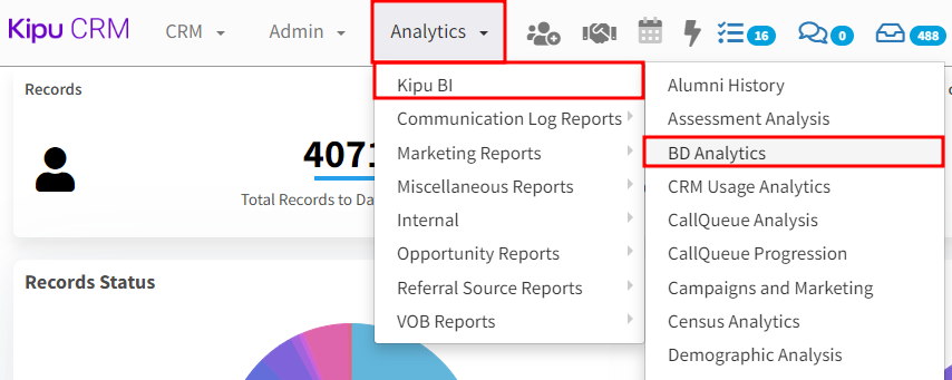 - Navigate to the page you would like to use as your homepage (in this example, we're using the BD Analytics dashboard).