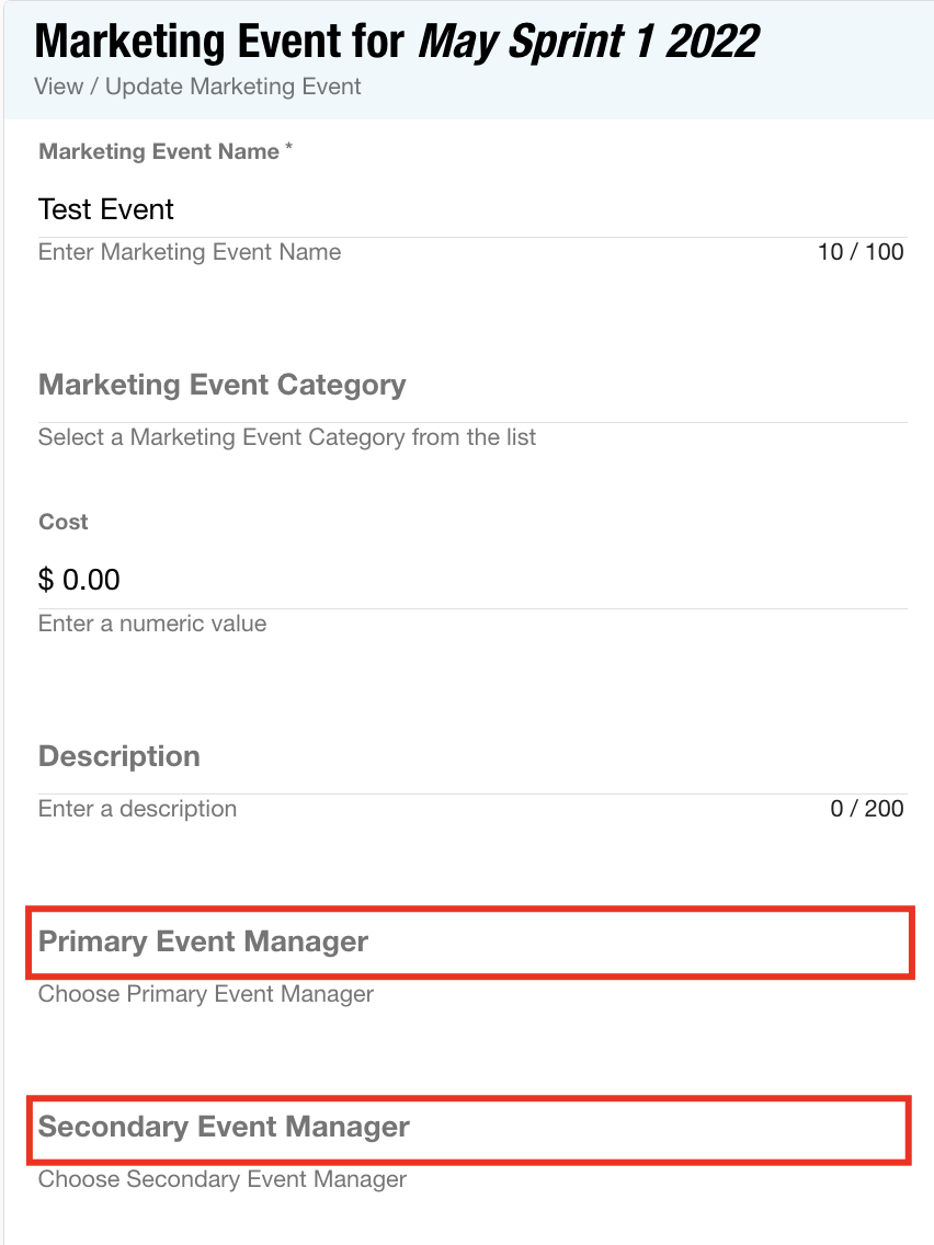 - User must be assigned to a marketing event as a primary or secondary event manager.