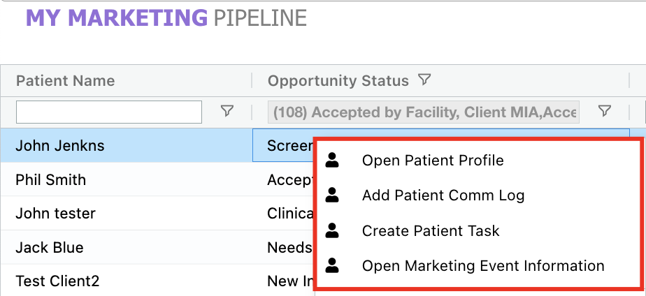 The My Marketing Pipeline will appear displaying all active and in-process referrals sent to your organization from marketing events that you manage.