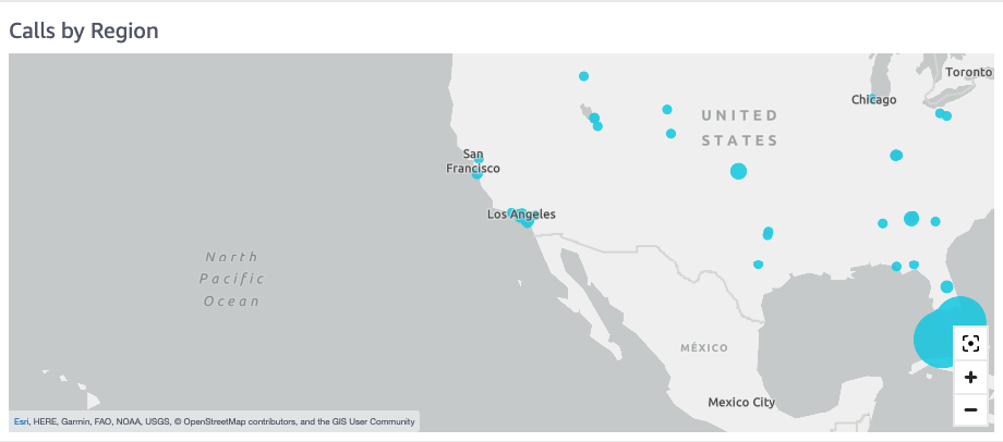 - Calls by Region: This widget contains an interactive map that displays the origin locations of your facility's incoming calls.