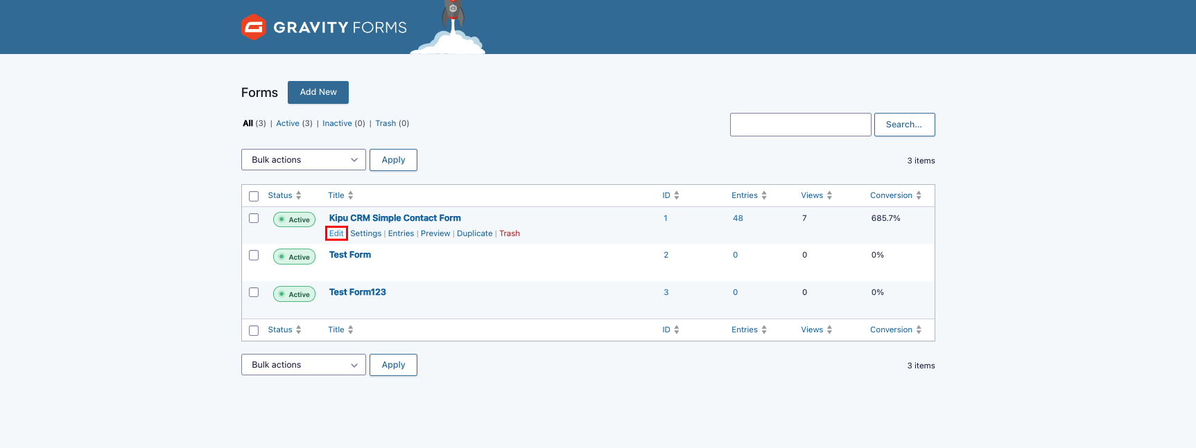 - Select Edit on the form you would like to update.