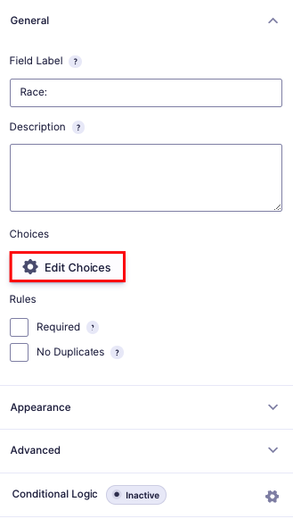 - Choose Race Field Label.