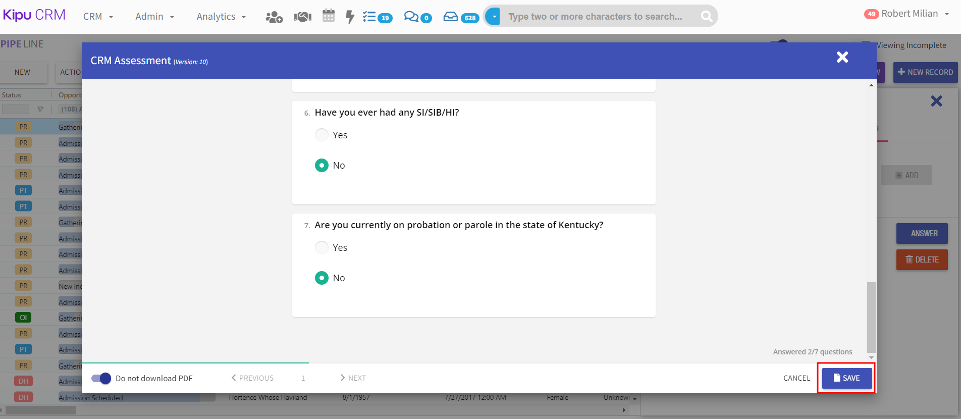 Kipu CRM, Patient/Prospect Records