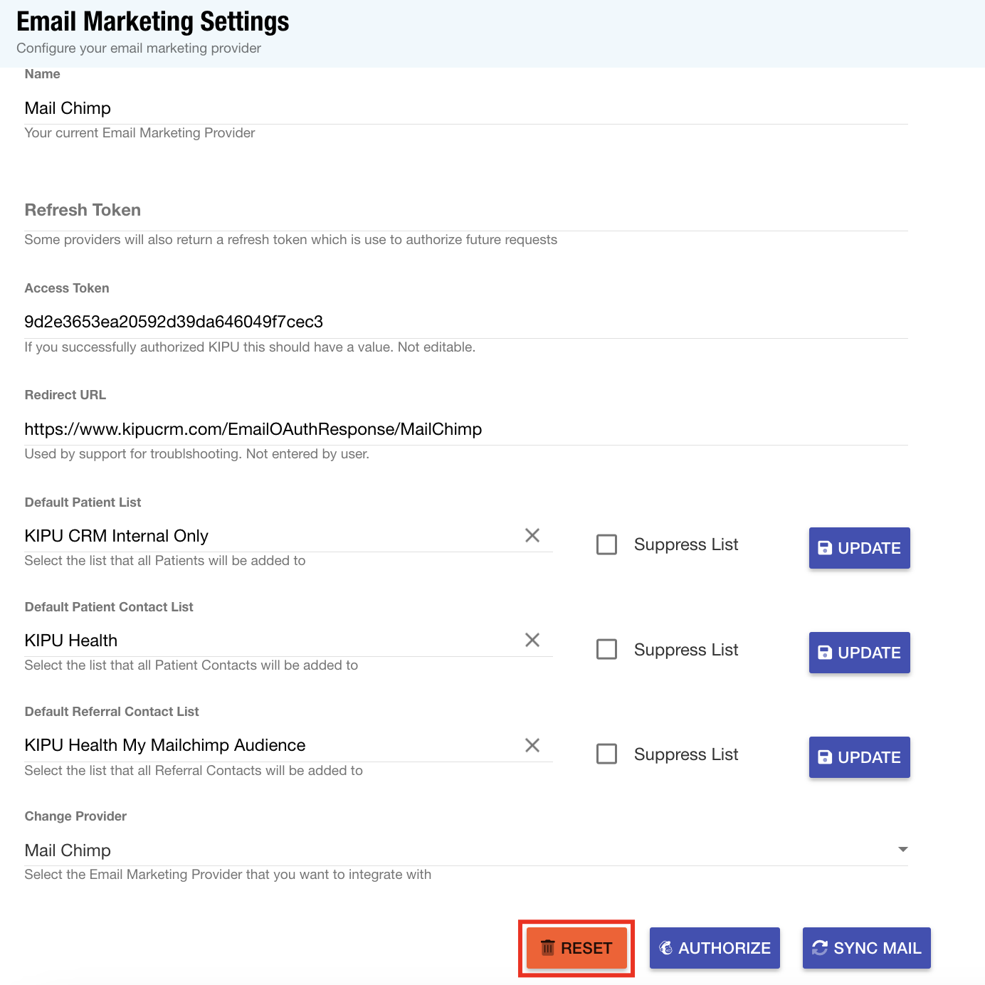 Email Marketing: The Configure Email Marketing page has been enhanced to include a Reset icon, empowering users to effortlessly remove integration authorizations.