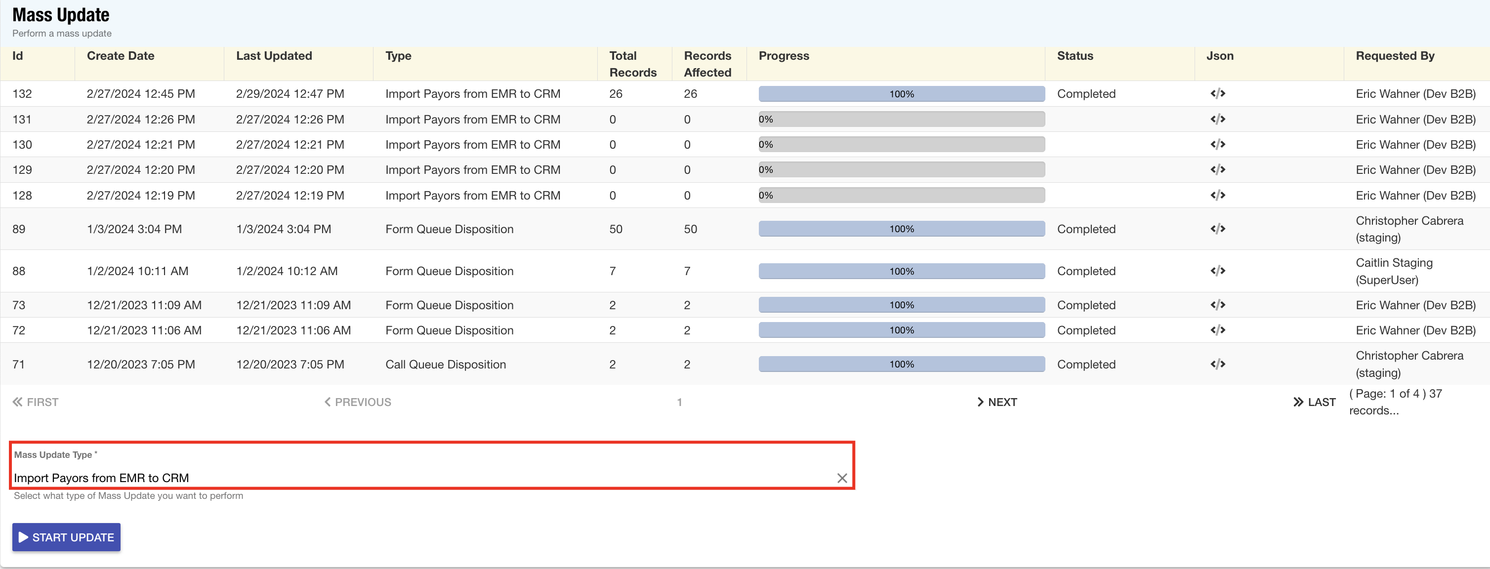 Mass Update: The Mass Update application has been updated to include a new option for EMR payor sync allowing users to seamlessly import their EMR payor list directly into the CRM for increased efficiency.