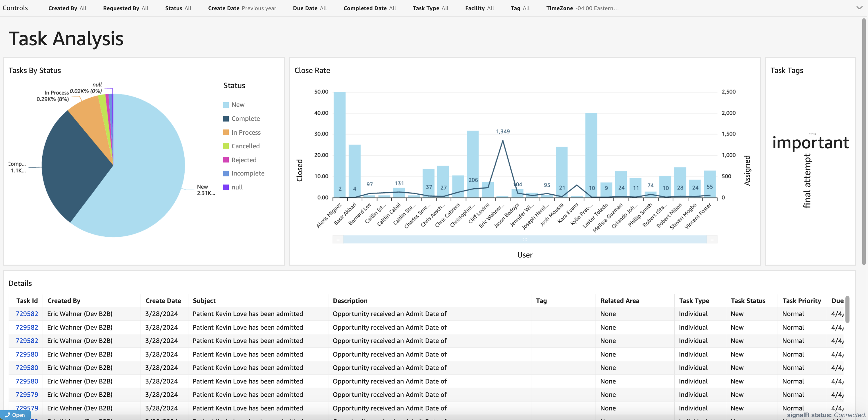 Kipu BI: Kipu BI now offers CRM users access to a newly introduced reporting dashboard called "Task Analysis," providing valuable insights and analytics for task management.