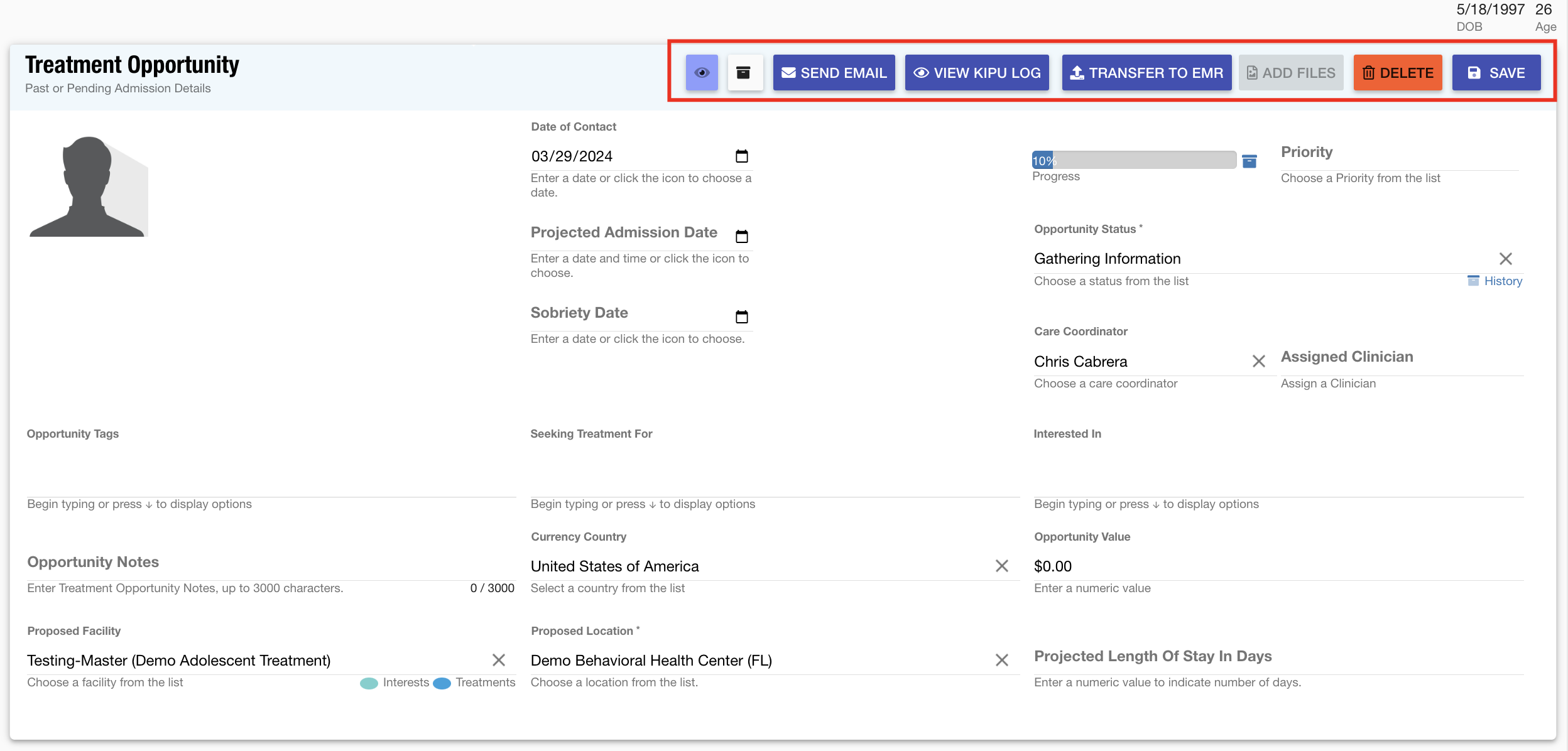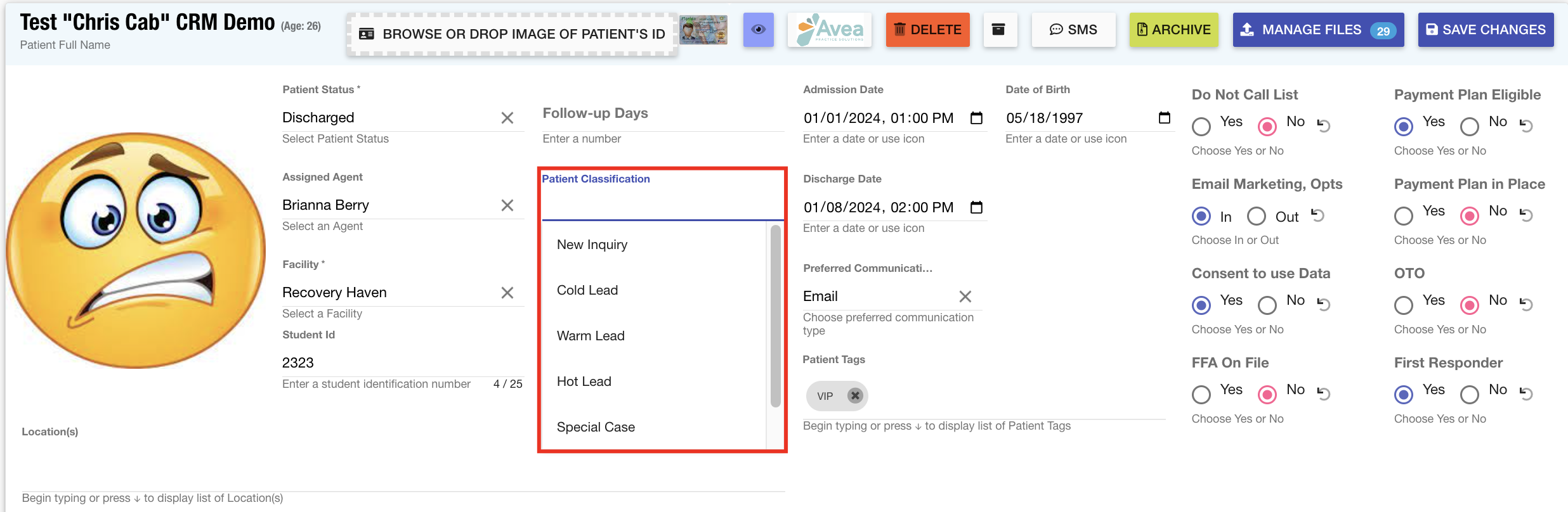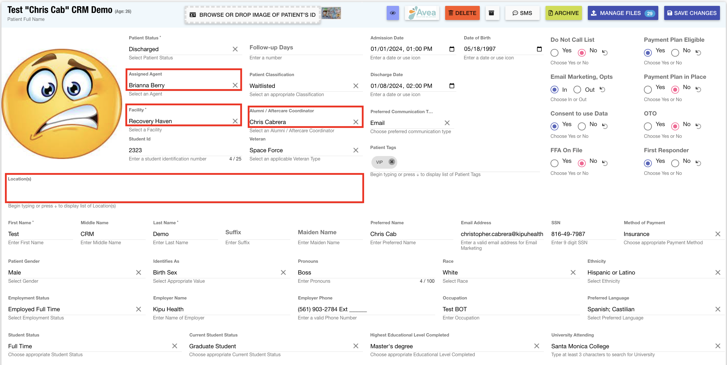 Patient Records: The dropdown list functionality for several fields in the Patient Information area has been enhanced to ensure consistency across the entire system. These fields include Facility, Location, Assigned Agent, and Alumni Aftercare Coordinator, providing users with a streamlined and cohesive experience when managing patient data.