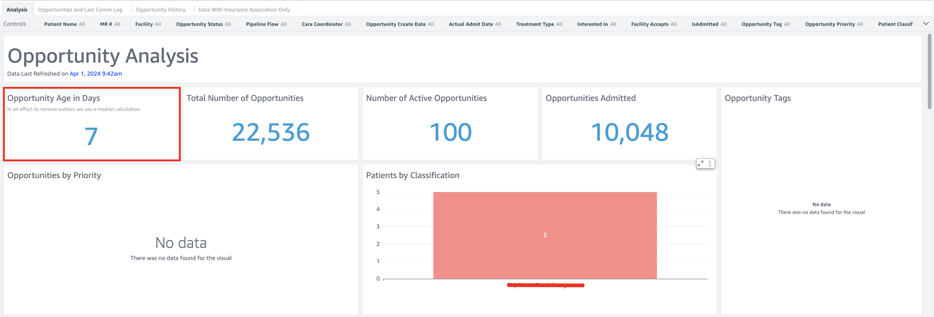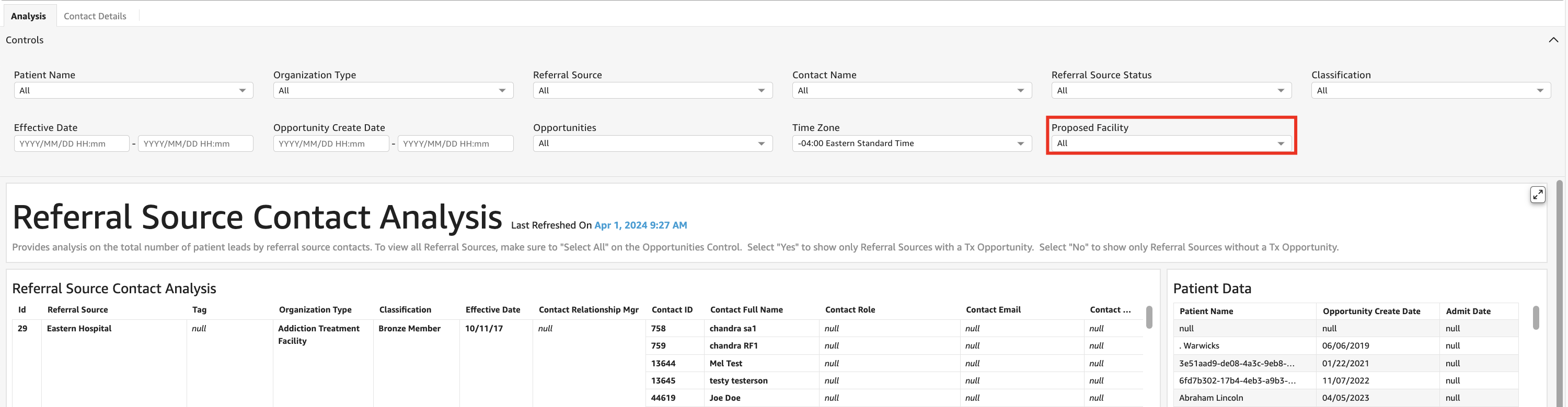 - Kipu BI: The Referral Source Contact Analysis dashboard now includes a new filter control for Proposed Facility, empowering CRM users with vital insights for comprehensive analysis of referrals received from referral source contacts.