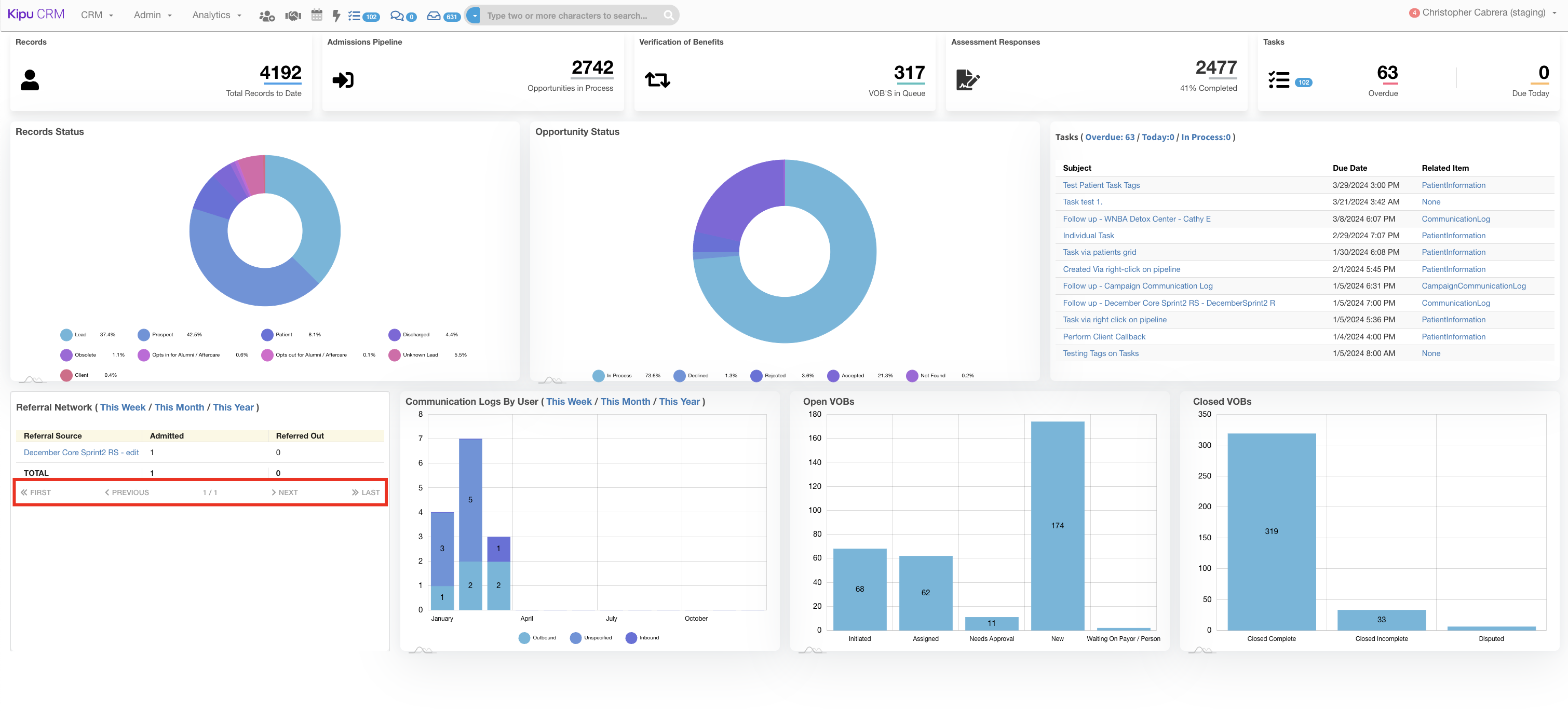 - Kipu BI: The Inbound Referrals dashboard has been enhanced with the addition of a new column for Proposed Facility, providing CRM users with essential information for a thorough analysis of all incoming clients.