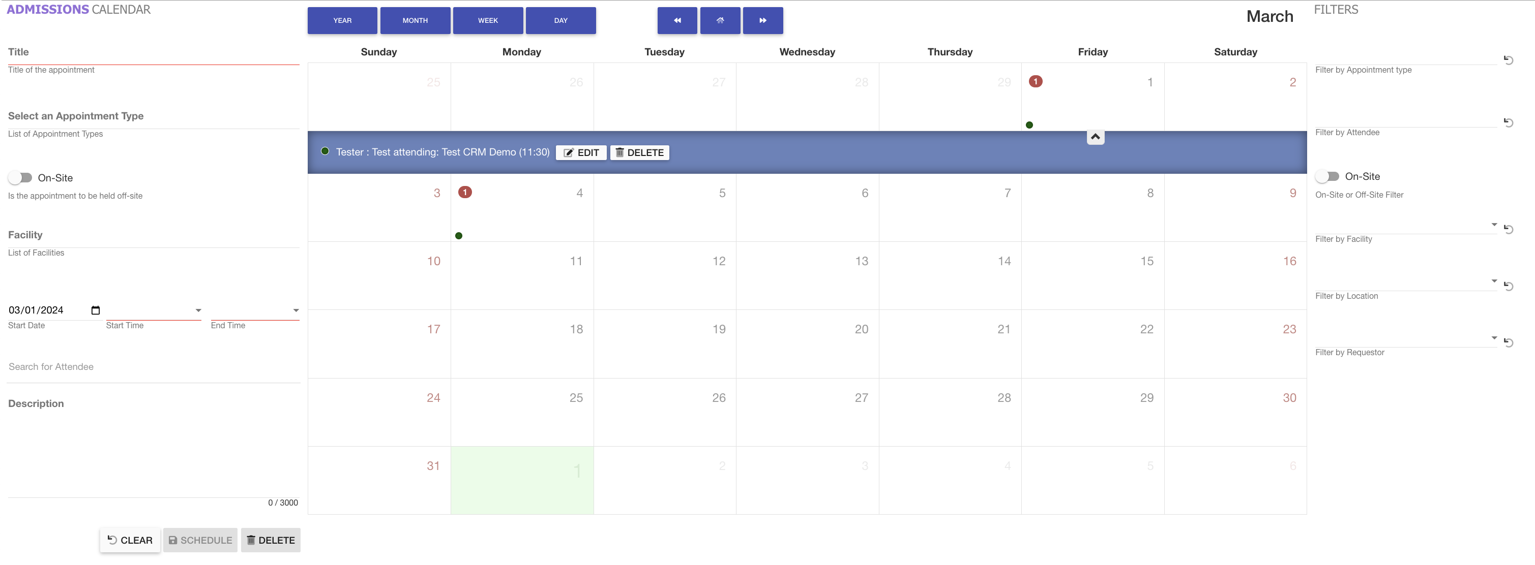 Admissions Calendar: The user interface of the Admissions Calendar has undergone enhancements to offer a more polished visual experience and improved functionality. These improvements include the implementation of Material Design elements and the addition of typeahead search functionality, enhancing user interaction and navigation in the calendar.